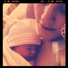 Us at the hospital right after she was born. I still can't over that I had just given birth. I felt so different (wonderful, really) and immediately after her tiny self came into the world I thought I could do it again.